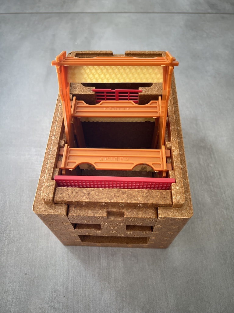 In unseren Begattungseinheiten gehen die Königinnen dann auf Reise (Belegstellen). Ich arbeite mit Apidea und Mini Plus Einheiten... Wobei Mini Plus zum arbeiten angenehmer ist. Da mehr Platz da ist, können die Königinnen länger in der Mini Plus Einheit bleiben und man kann einen guten ersten Eindruck Gewinnen.